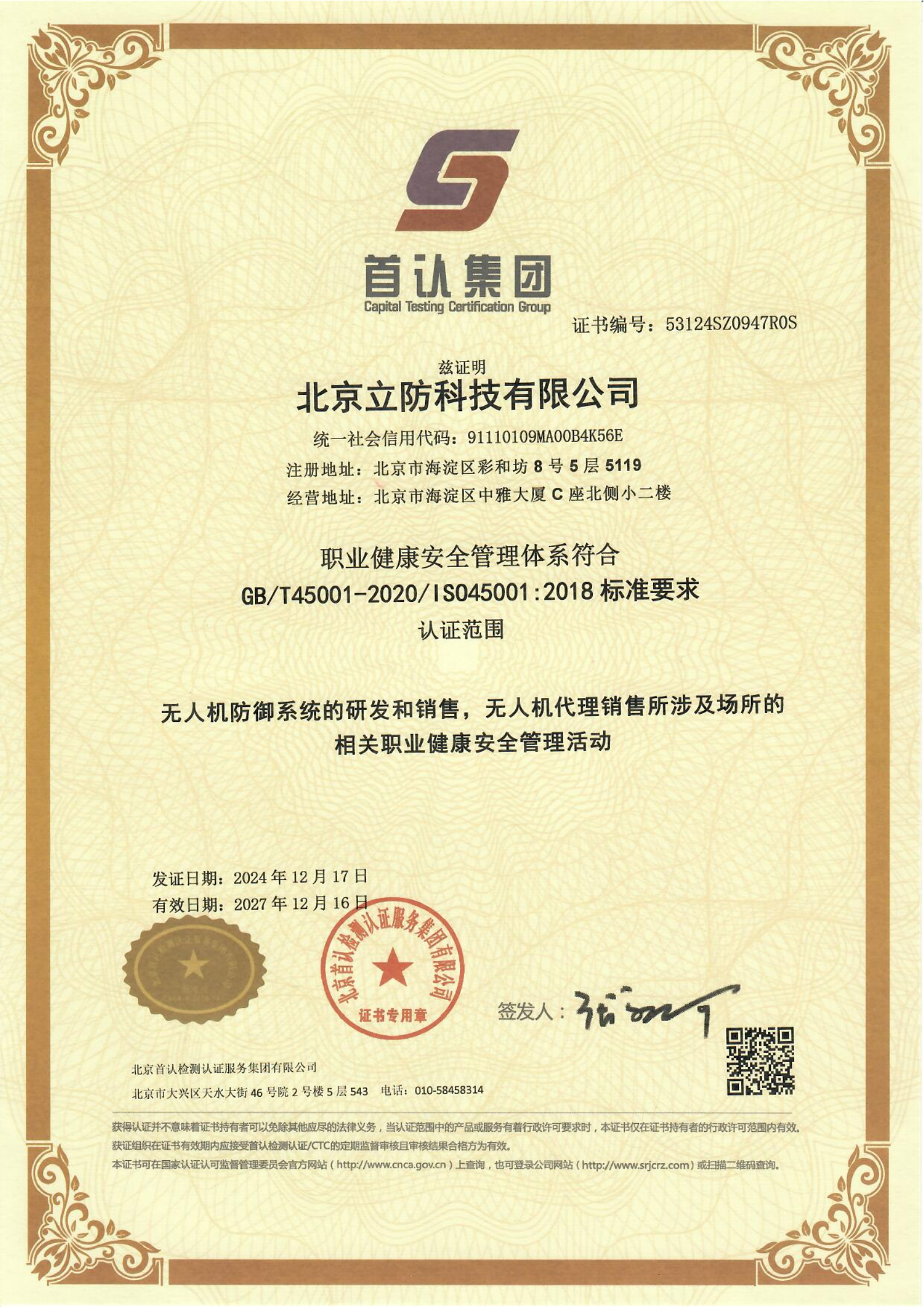 公司2017年榮獲“反無人機(jī)十大品牌”;2018年與中國(guó)人民公安大學(xué)中國(guó)低空安全研究中心簽署戰(zhàn)略合作、匯聚政產(chǎn)學(xué)硏資源,共同創(chuàng)造開放的生態(tài)系統(tǒng);2020年作為主要參與單位獲得公安部課題結(jié)項(xiàng)證書;2022年榮獲公安部科學(xué)技術(shù)獎(jiǎng)勵(lì)三等獎(jiǎng)。2023年首次定義了國(guó)內(nèi)唯一的C-UAS系統(tǒng)(無人機(jī)管控技術(shù)系統(tǒng)),構(gòu)建全方位、多手段、固定和機(jī)動(dòng)、遠(yuǎn)中近、高中低相結(jié)合的無人機(jī)偵測(cè)反制裝備體系,提升無人機(jī)偵測(cè)反制實(shí)戰(zhàn)效能。2024年成功申請(qǐng)河北省科技廳課題《低空安全關(guān)鍵技術(shù)與應(yīng)用示范》。公司與中國(guó)移動(dòng)、中國(guó)聯(lián)通、中國(guó)電信均建立良好合作關(guān)系,打造全國(guó)廣域覆蓋無人機(jī)遠(yuǎn)程識(shí)別系統(tǒng)。