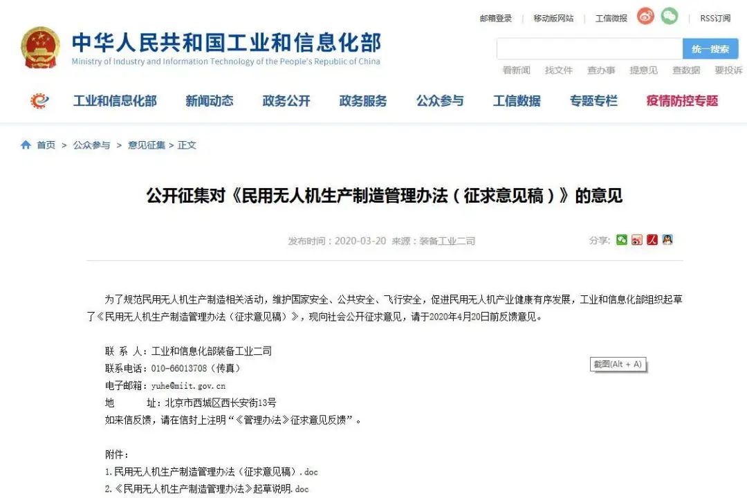03-232020工信部就《民用無人機生產(chǎn)制造管理辦法(征求意見稿)》公開征求意見